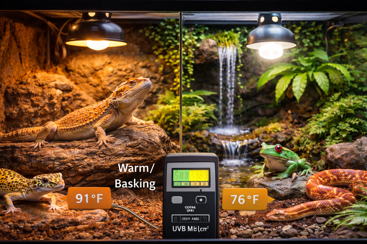 Lighting does more than illuminate the enclosure—it regulates biological rhythms and vitamin absorption.