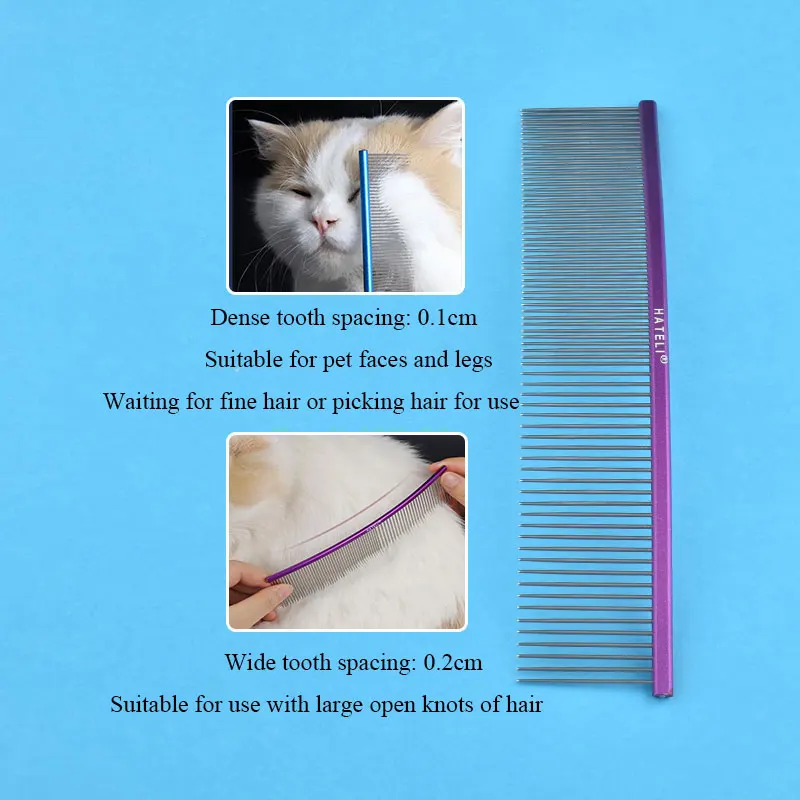 19cm Pet Curved Comb Stainless Combs Professional Pet Grooming Comb Dense Sparse Teeth Dog Cat Cleaning Brush Open Knot Comb