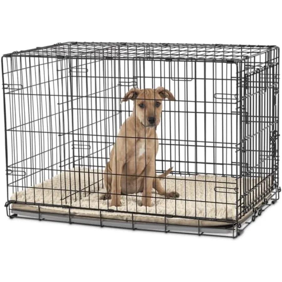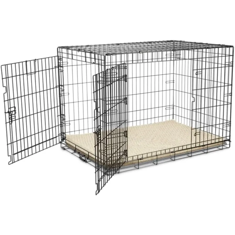 2-Door Folding Dog Crate for Travel and Home Use 43.2 L x 28.5 W x 30.7 H Lightweight and Portable Design with Secure Locks and