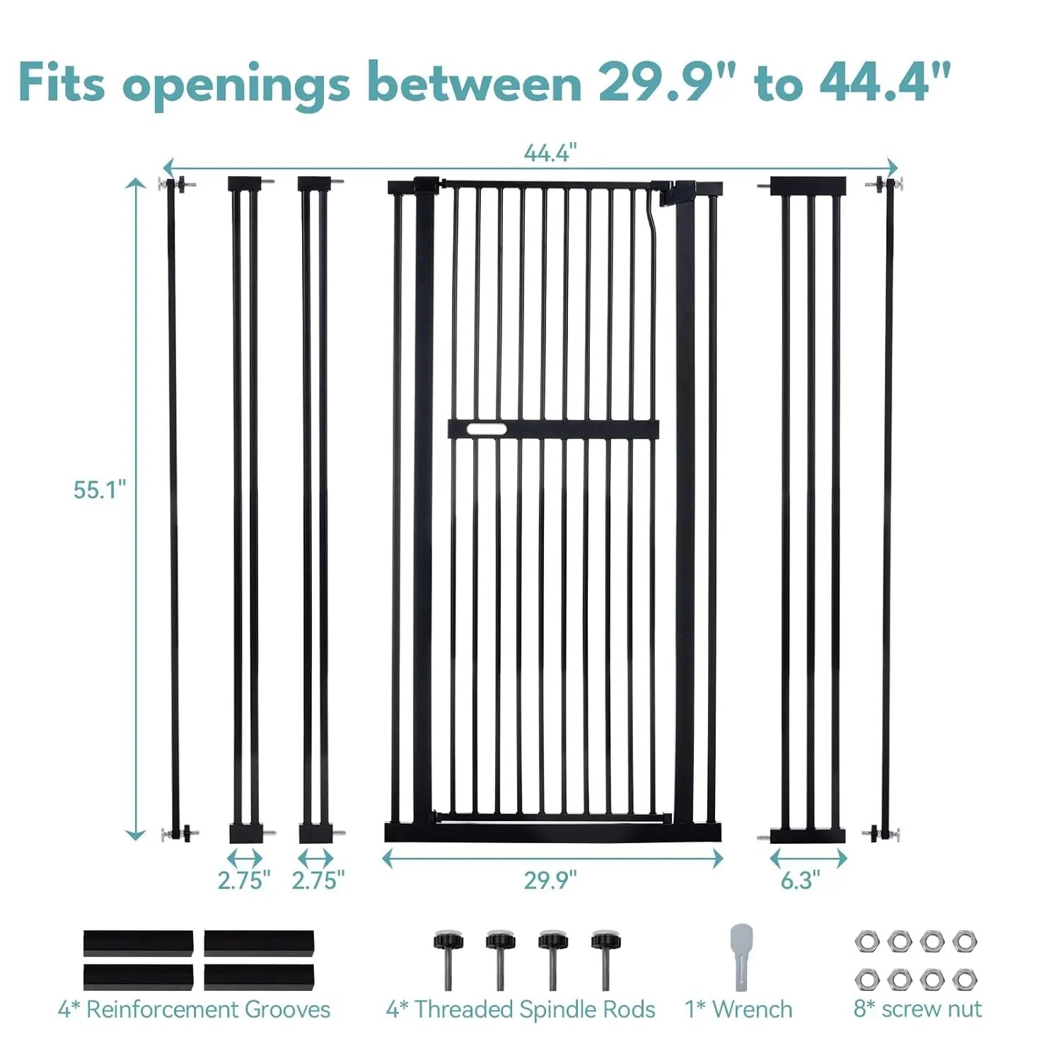 55.1″ Extra Tall Pet Gate for Cat/Dog,29.9-44.4″Wide Auto Close Tall Cat Gate,NO Drilling Pressure Mounted for Doorways/Hallways