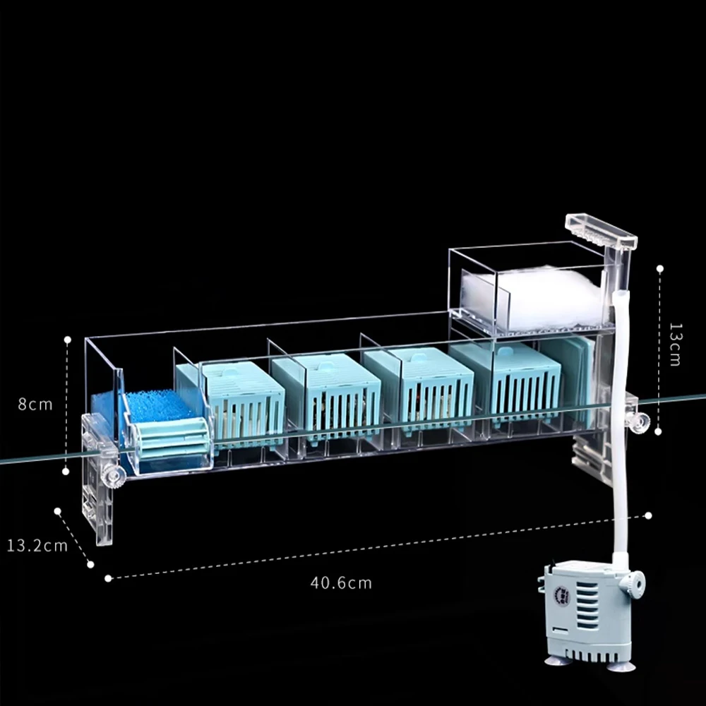 Aquarium Wall-Mounted Waterfall Filter Roller, ,Circulating Oxygen genation,Multi-Layer Fish Tank Top Filter New