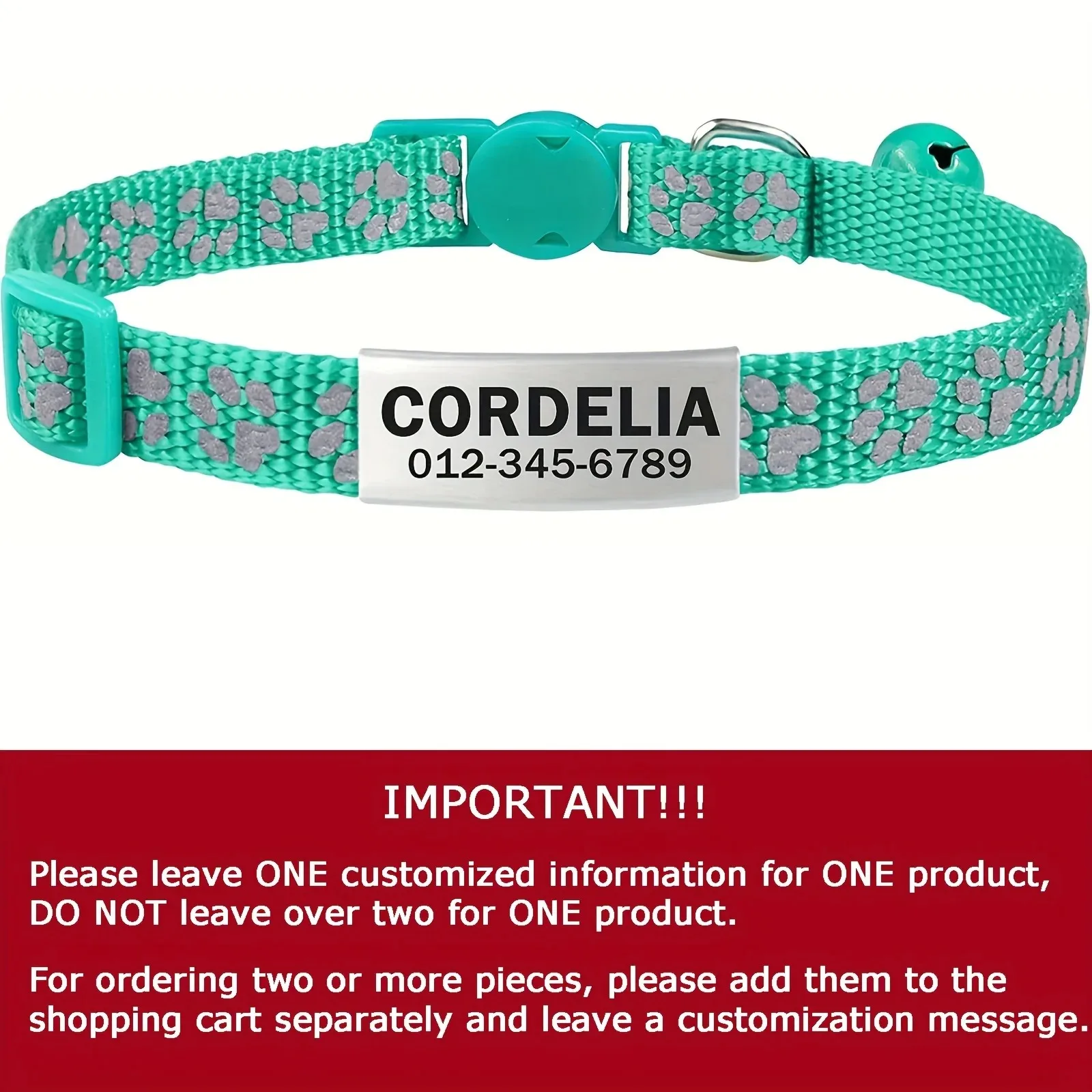 Custom Reflective Cat Collar – Personalized Name Tag & Bell Breakaway Adjustable Anti-Lost Design with Paw Print Collar for Cats