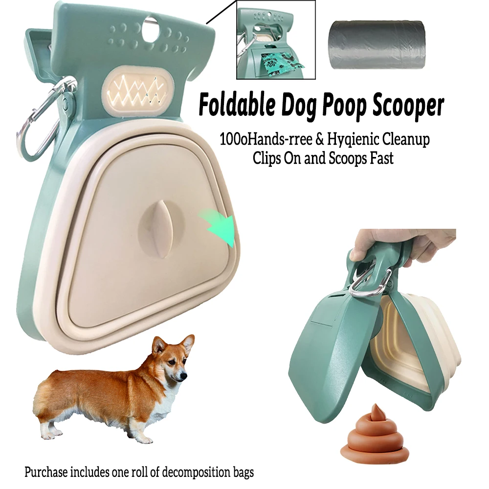 Dog Pet Travel Foldable Pooper Scooper Portable and Handheld Size Pet potty Fecal Collector Cleaning Tool With 1 Roll Trash bags