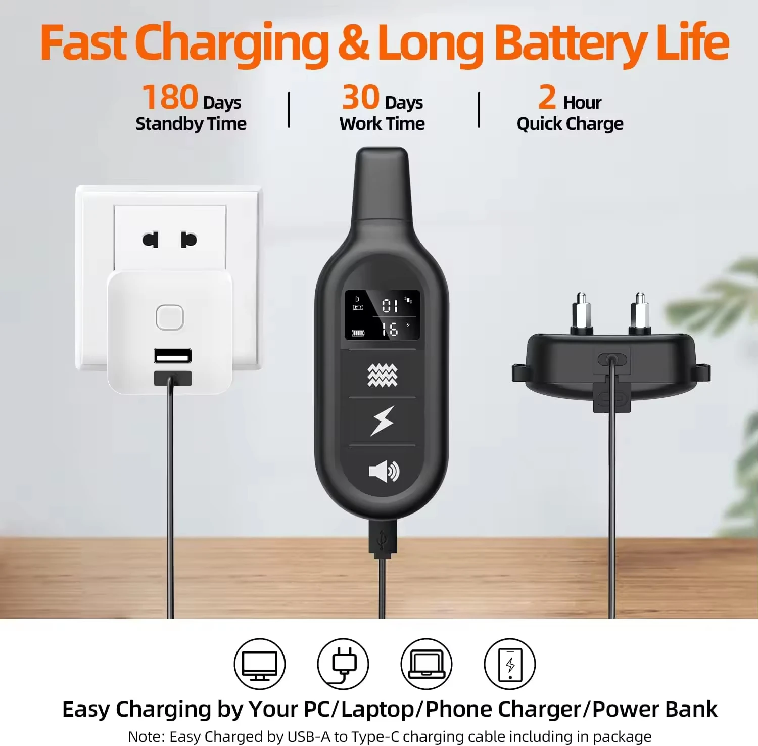 Electric Dog Training Collar Digital Rechargeable Remote Control Waterproof Vibrator Pet Dog Bark Stop Shock Collar for Dogs