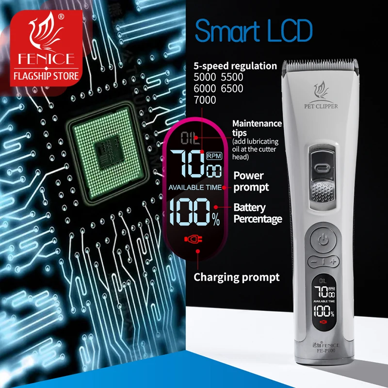 Fenice Clipper Dogs Professional LCD Screen Pet Cat Clippers Electrical Grooming Trimmer Rechargeable Haircut Machine Animals