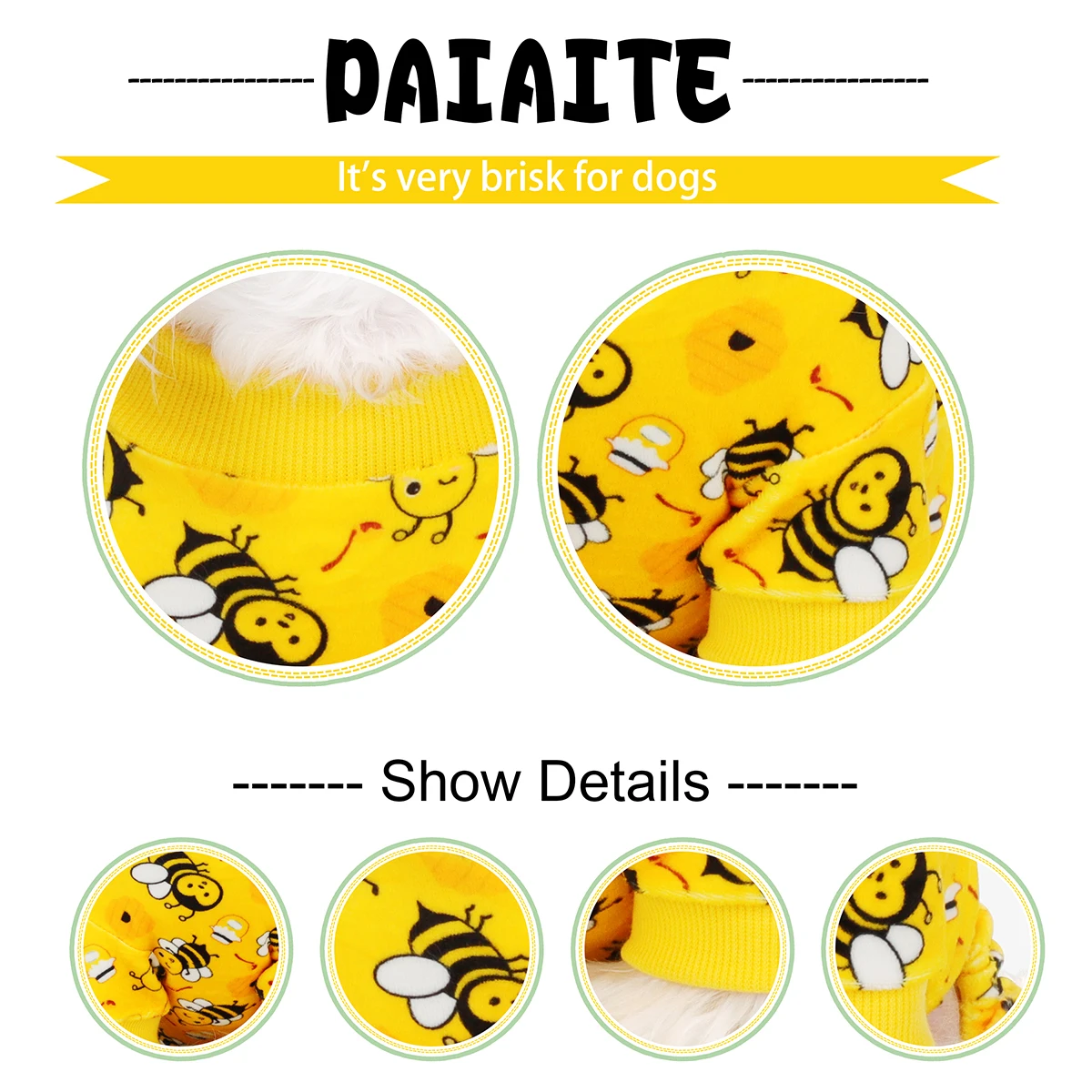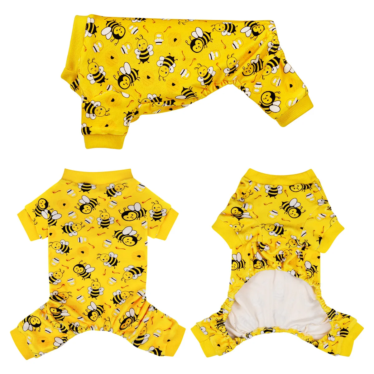 “Funny Bee Dog Pajamas – Soft Stretchy Onesie for Chihuahua Yorkie, Cozy Winter PJs with Feet, Perfect for Small Dogs