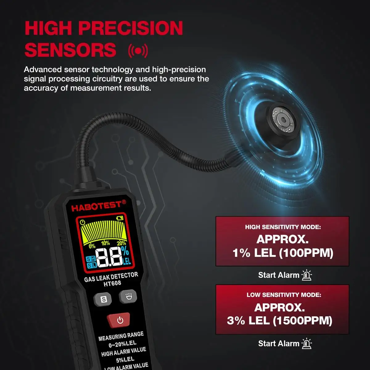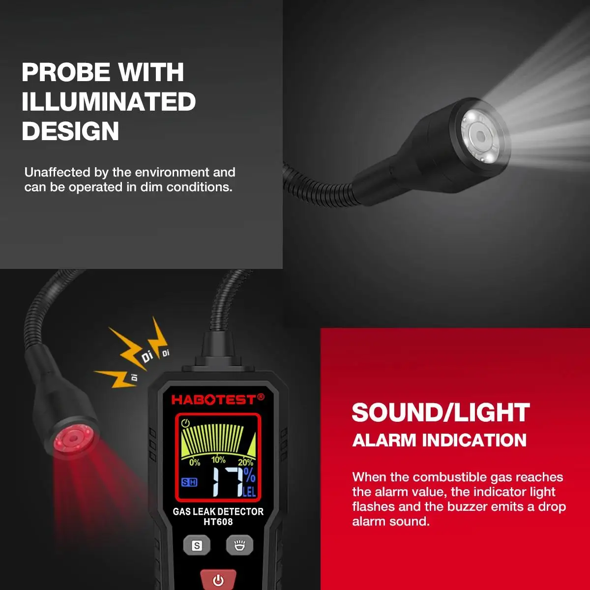 HABOTEST HT608 Natural Gas Leak Detector Sound & Screen Alarm Combustible Flammable Methane Gas Leak Detector Location Determine