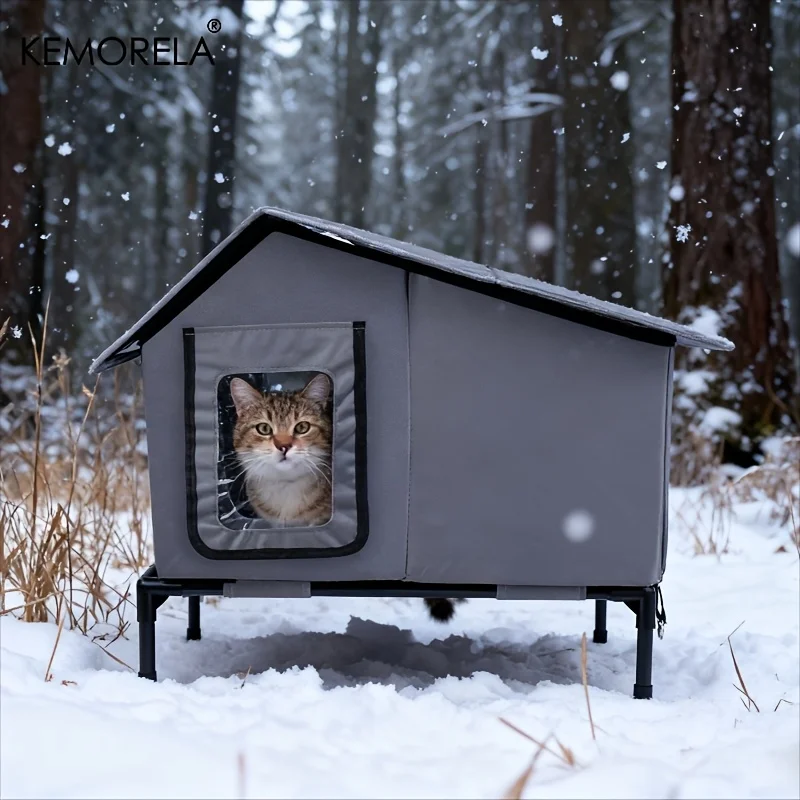 KEMORELA Winter Outdoor Cat House Equipped with an Escape Door – Large Feral Cat Shelter Collapsible Shelter for Small Dogs&Cats
