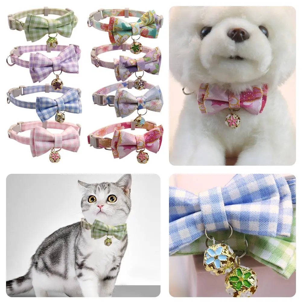 Lattice Bow Pet Cat Collar With Bell Adjustable Pet Collar Bownot Safety Necklace for Puppy Kitten Cat Cute Pattern Pet Supplies