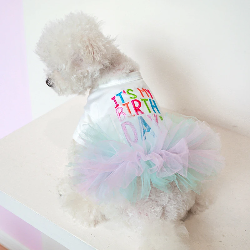 Layered Rainbow Veil Puppy Summer Clothes for Small Dogs Birthday Short Sleeve Pet Dog Dresses Princess Summer New Cat Clothing