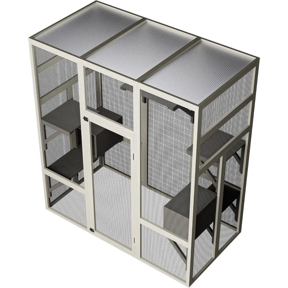outdoor cat enclosure: 70.1 waterproof roof, 2 resting boxes & platforms