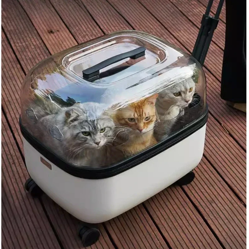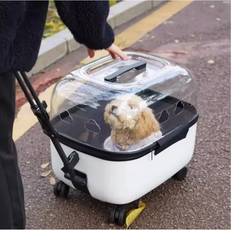 Panoramic Transparent Pet Trolley Box Large Capacity Cat Basket Lightweight Outdoor Transport Case Universal Pulley Pet Stroller