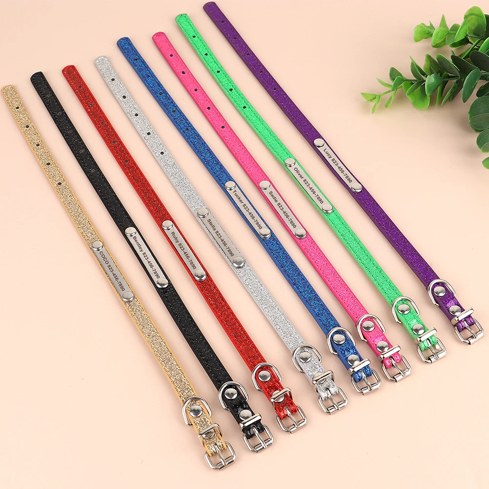 Personalized Cat Collar Bling PU Leather Cat Collars Free Custom Pet Puppy Kitten ID Necklace Adjustable for Cats Small Dogs