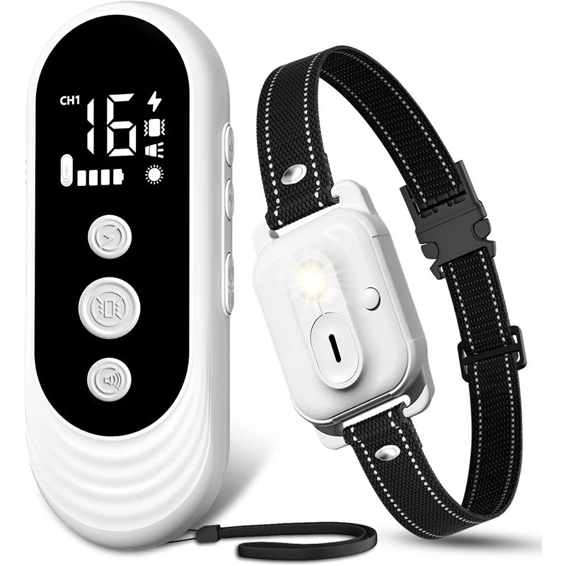 Dog Training Collar with Light: The dog collar has 2 light modes: flashing light andconstant white light . If you need to track your dog on a night walk, the flashing light can help your dog light up the way and locate your dog. If your dog likes to run into the woods at night, or likes to hide to pee before going to bed, the constant white light can light up the way or help you pick up the dog poop, so the light mode of this collar is very helpful to you.
