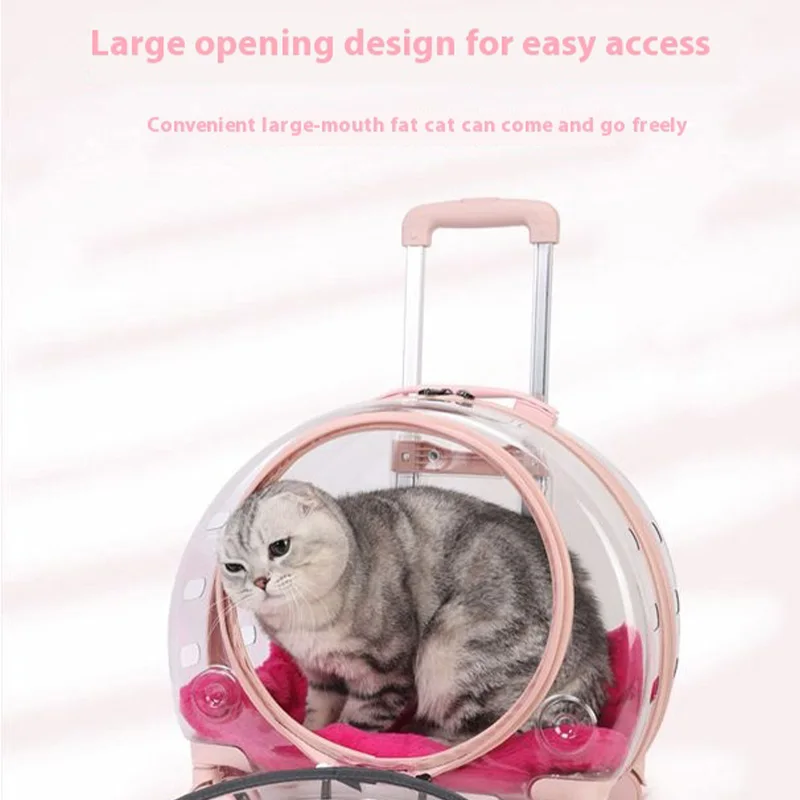 Transparent Pet Travel Carrier Portable Trolley Suitcase for Cats with Ventilation Holes Adjustable Handle Large Opening for Cat