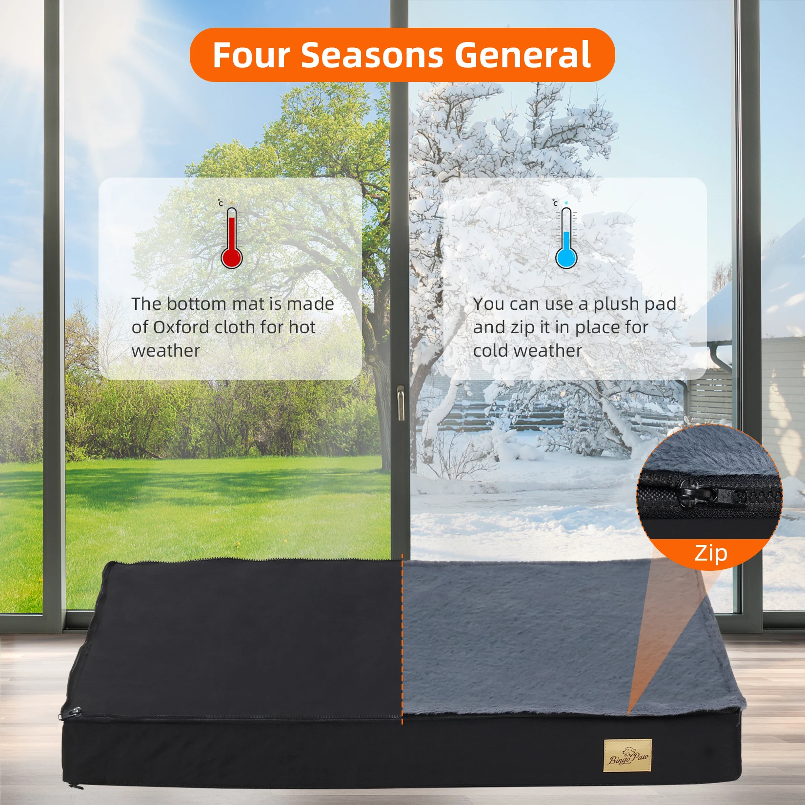【Suitable For Winter/Summer】2 in 1 use, Bingopaw dog pet bed features a soft PV plush mattress zippered on the surface, very soft and comfortable for cold winter days, you can also use the bed in the summer without the mattress, means that you could get a very well-designed dog bed with only little money
