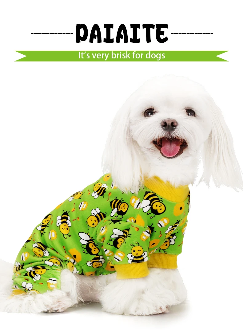 "Funny Bee Dog Pajamas - Soft Stretchy Onesie for Chihuahua Yorkie, Cozy Winter PJs with Feet, Perfect for Small Dogs