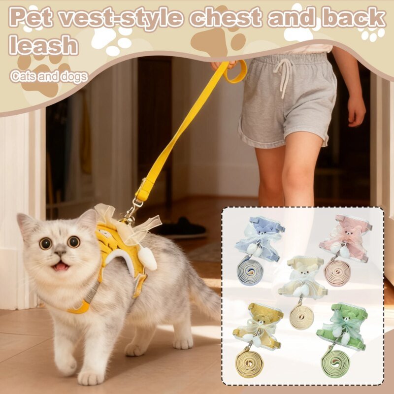 Dog Harness Leash Set for Small Dogs Adjustable Puppy Cat Harness Vest French Bulldog Chihuahua Pug Outdoor Walking Lead Leash