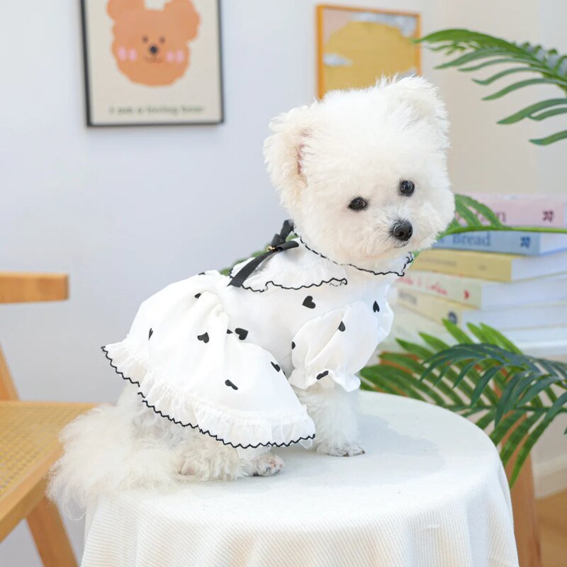 Cute Lace Dog Love Dress Summer Spring Pink Pet Jacket With Skirt Outfit Puppy Animal Cat Clothing Apparel Pomeranian Shih Tzu