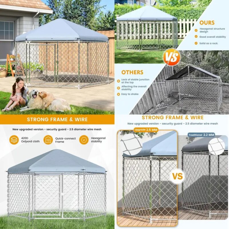 Outdoor Dog Fence, Heavy Duty Dog ​​kennel, Pet Cage, Mesh Dog Cage Steel Fence with Safety Lock