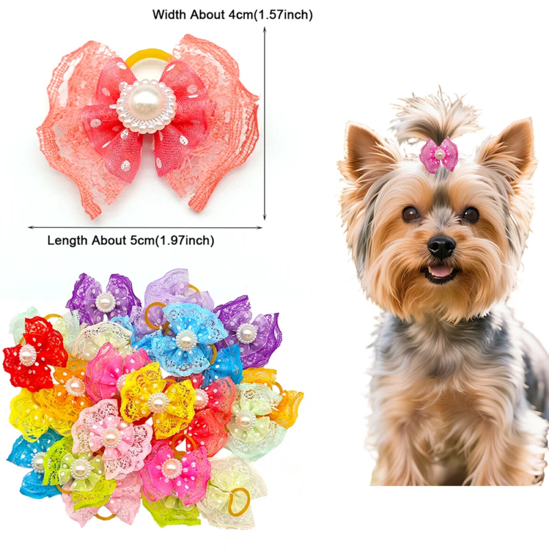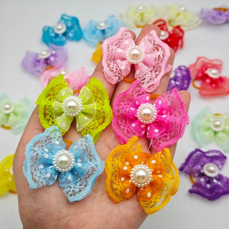 10pcs Bright Double-layer Lace Bows For Dogs 13 Colors Dog Grooming Hair Accessories Pet Rubber Band Hair Clips Puppy Supplies
