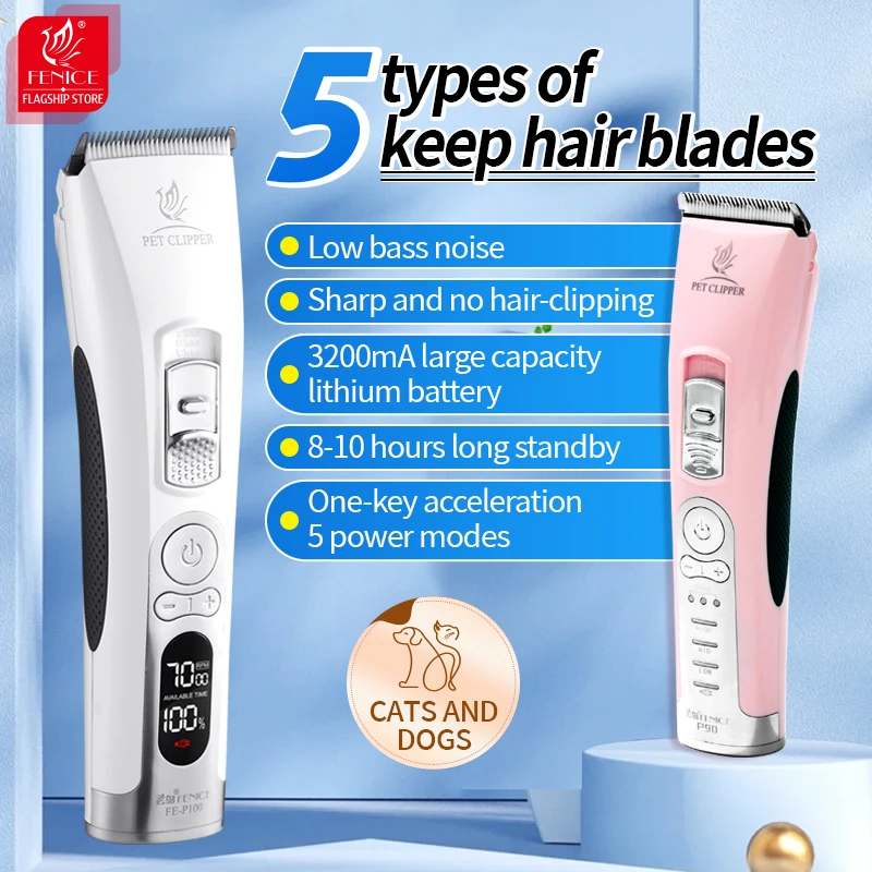 Fenice Clipper Dogs Professional LCD Screen Pet Cat Clippers Electrical Grooming Trimmer Rechargeable Haircut Machine Animals