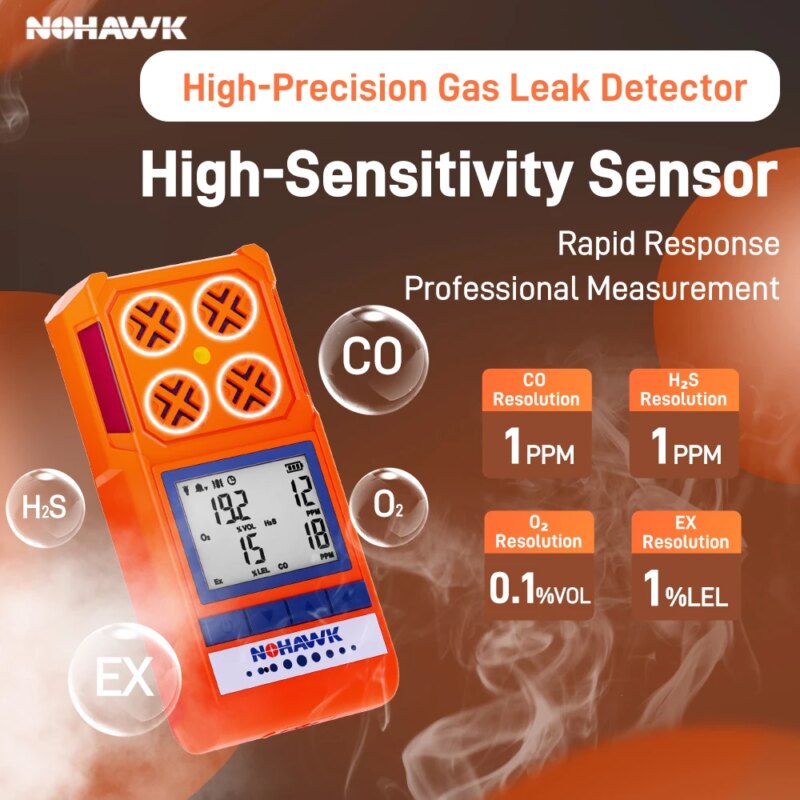 NOHAWK 4-in-1 Portable Gas Detector Combustible Natural Leak Alarm with Sound Screen Vibration for Home or Factory Safety