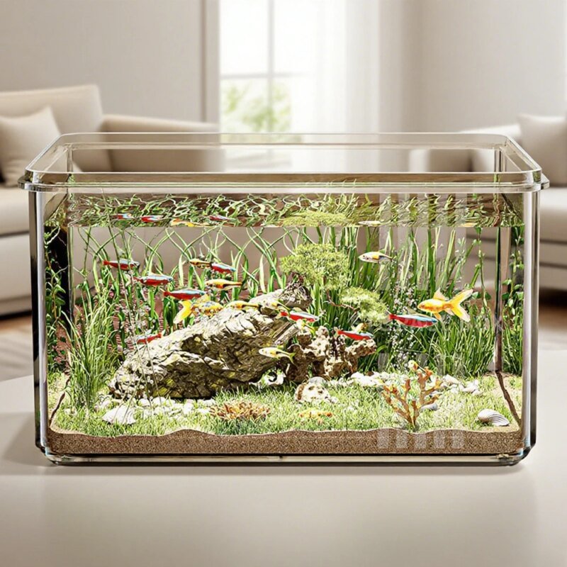1 PC Transparent Aquarium Creative Desktop Fish Tank for Office Home Decor Rectangular(Bare Tank, No Scenery or Stones Included)