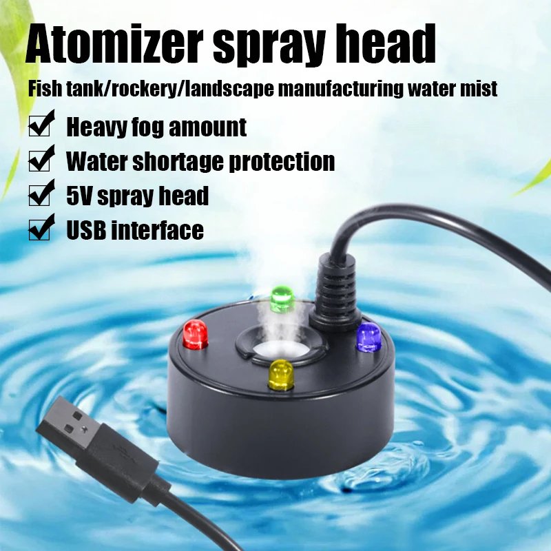 1PC 5V USB Mist Maker Fogger Nebulizer Water Fountain Fish Tank Pond Atomizer Head With 4 LED Colorful Lights